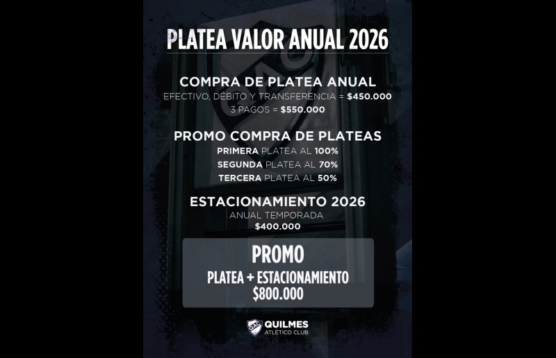 FútbolValores 2026 Valores 2026 Ya están disponibles los valores de las plateas y estacionamientos para la temporada 2026